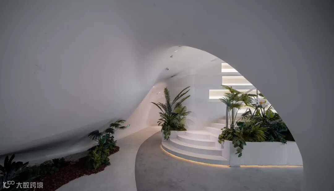 进入建筑的第一条路径是通过前场外置的半空高度的坡道进入,并将人缓缓导向一个令视觉振奋的穹型壳面空间。