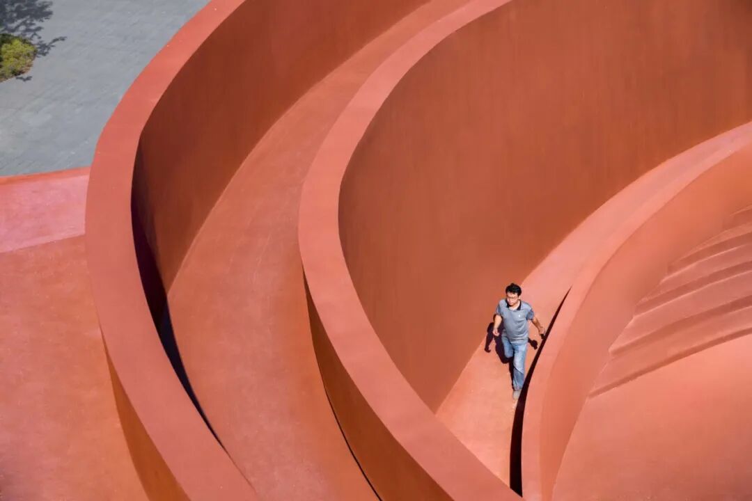 丰富自由的曲线,处处可见对外部环境的独到剪裁。这些瞬间的剪影在整个建筑的行走过程中形成了一帧帧具有电影感的画面,连在一起,就是一场自然的完美演出。