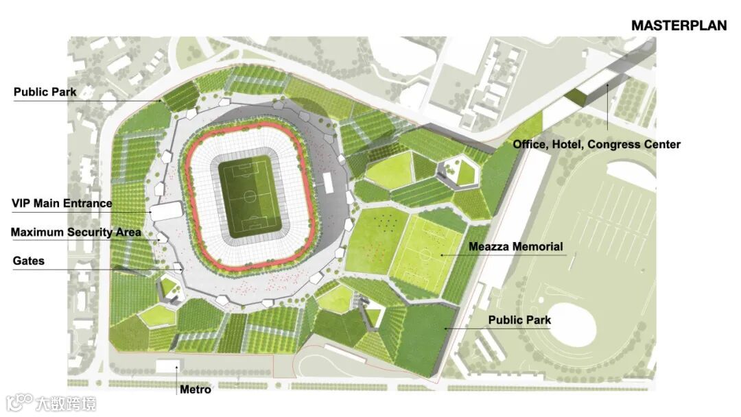 Stefano Boeri Architetti与包括ARUP、Fabio Novembre和Balich Wonder Studio在内的多学科团队一起,公布了名为国际森林体育场的新米兰体育场的设计。该项目位于该市的圣西罗地区,在国米和米兰队宣布于2019年举行的比赛中向公众展示。该体育场被设想为 "体育和休闲区 "系统的一个组成部分,这是一个面积超过800公顷的广泛的总体规划,计划将圣西罗区转变为欧洲体育背景下的一个卓越中心。
