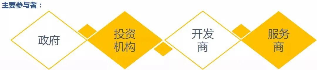 一般前期的参与者为政府,后期的主要参与者有投资机构(基金、金融机构等)、开发商、服务商,但他们在介入的时期、选择的标的资产、商业模式及各自优势等方面均差异显著。