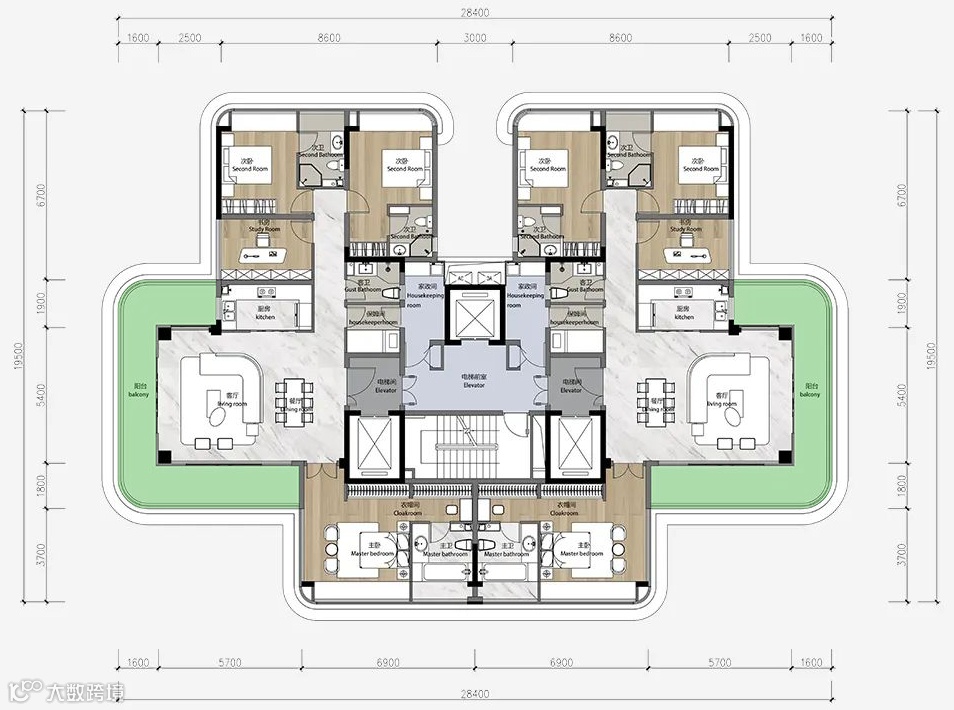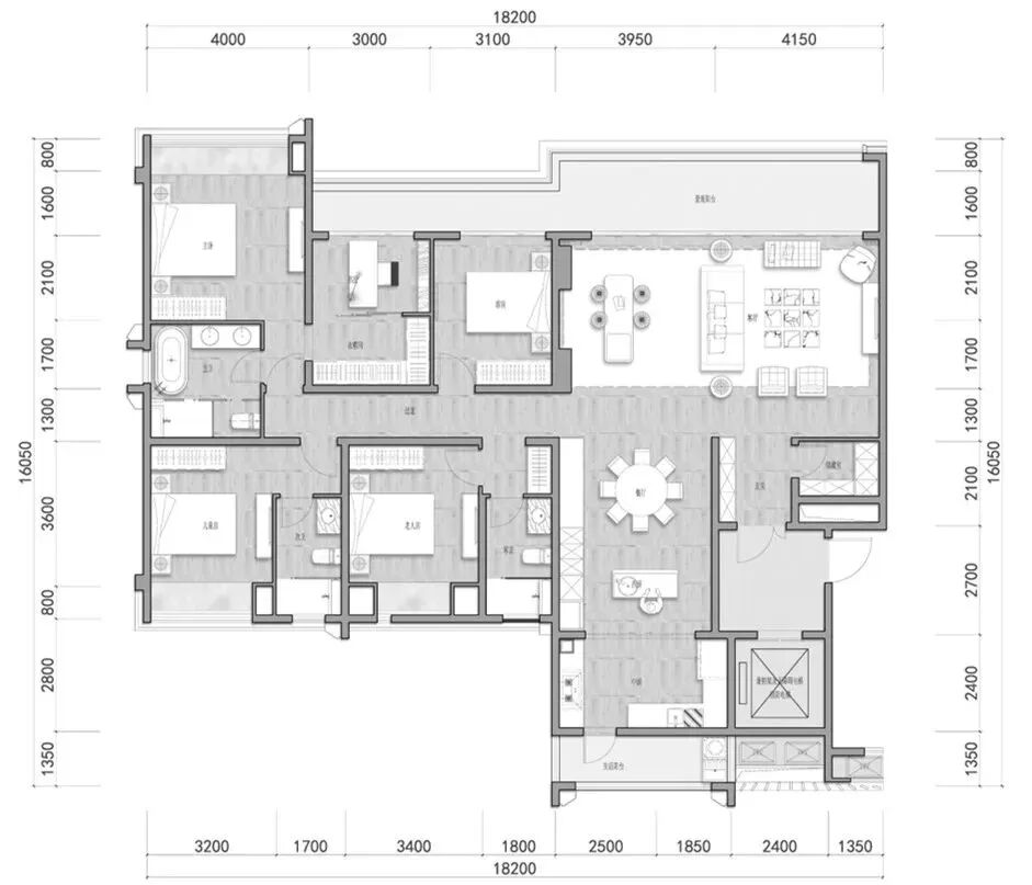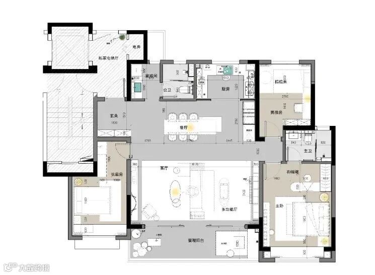 保利发布的改善185㎡的户型,在更大的空间尺度下,需要更多功能和体验空间。
