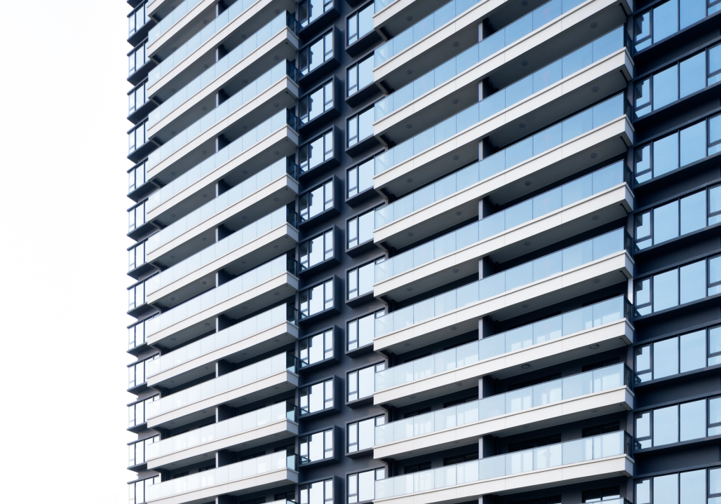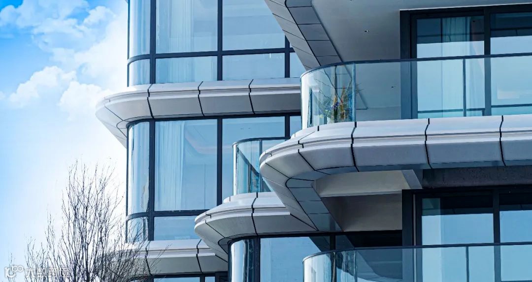 错层阳台的设计从视觉上拉大层高,蜿蜒流畅的立面曲线,营造出波浪一般的动感立体效果。加之大面积的玻璃带来很强的通透性,搭配蓝灰色的玻璃栏板,勾勒和凸显洋房的整体线条之美,营造出不一样的高级感。