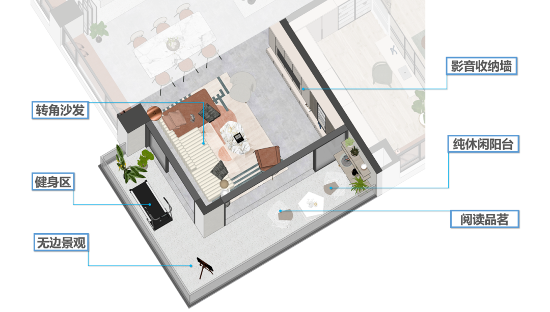 阳台是情景化的,而非晾晒衣物的空间。阳台设计正在不断往更人性化、更实用方向演变,能容纳更多生活的可能性。