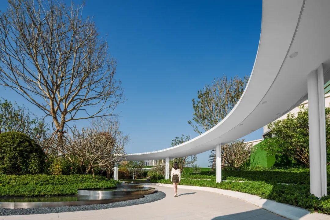 The long grass steps were the path home, free pergola was a homecoming guide. Walked in the flowing curves, even without winding and secluded path, you could feel as if got back home. Across the romantic S-shaped pergola, you arrived at the garden-like residential area, which opened the slow life here.