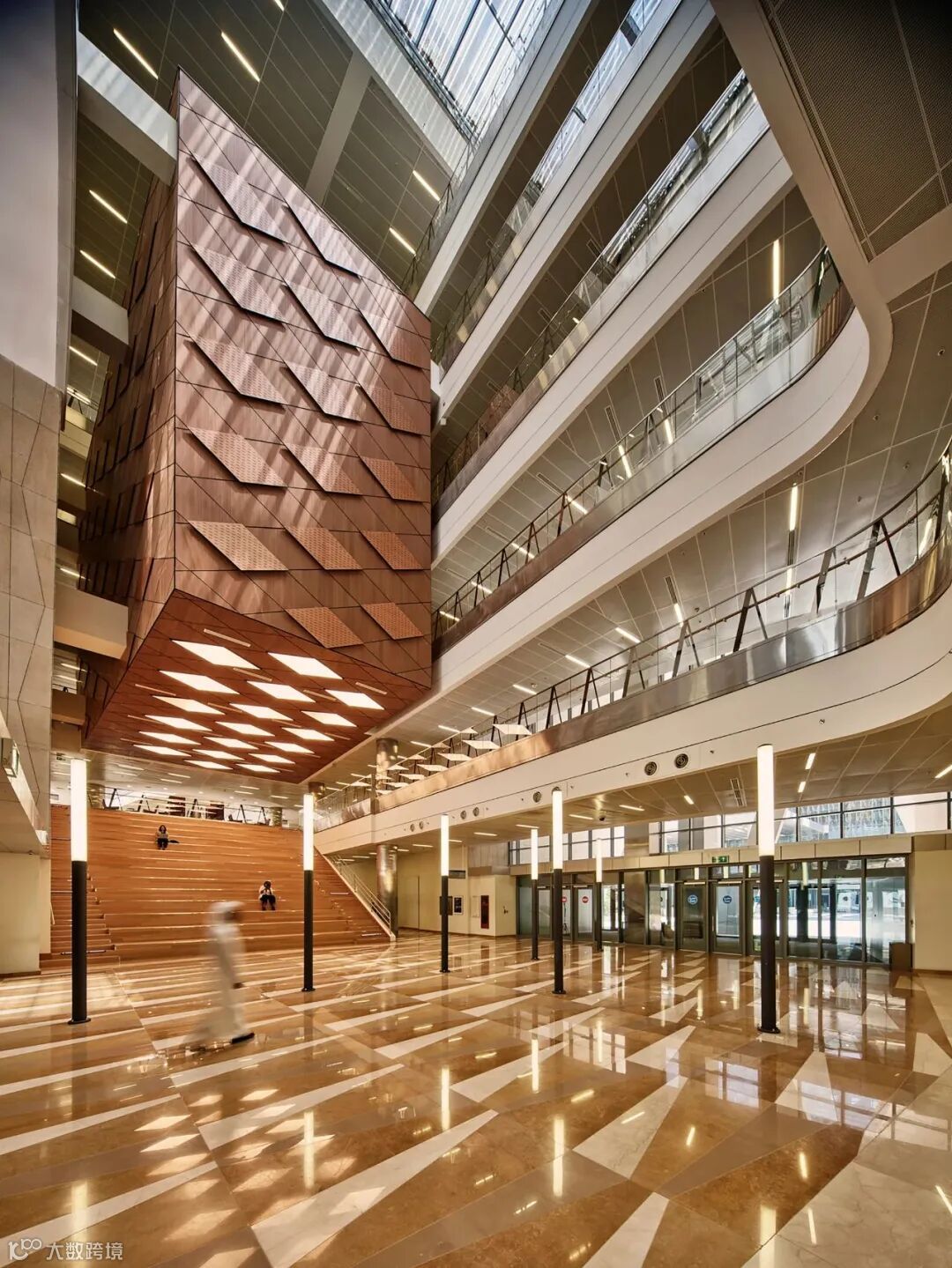 学生到达区有一个宽敞、明确的入口,将学生和游客直接带入主中庭,这里有一个开放的阶梯式论坛,鼓励学生进行非正式互动。建筑创新特征的核心主题是可见性概念。从学生们在中庭可以看到彼此,到繁忙的实验室和教室,再到在校园范围内将建筑一分为二的galleria大街上向路过的人展示COLS的工作,以及绿洲和整个校园的开阔视野,生命科学学院力求在其设计的各个方面都具有可见性。