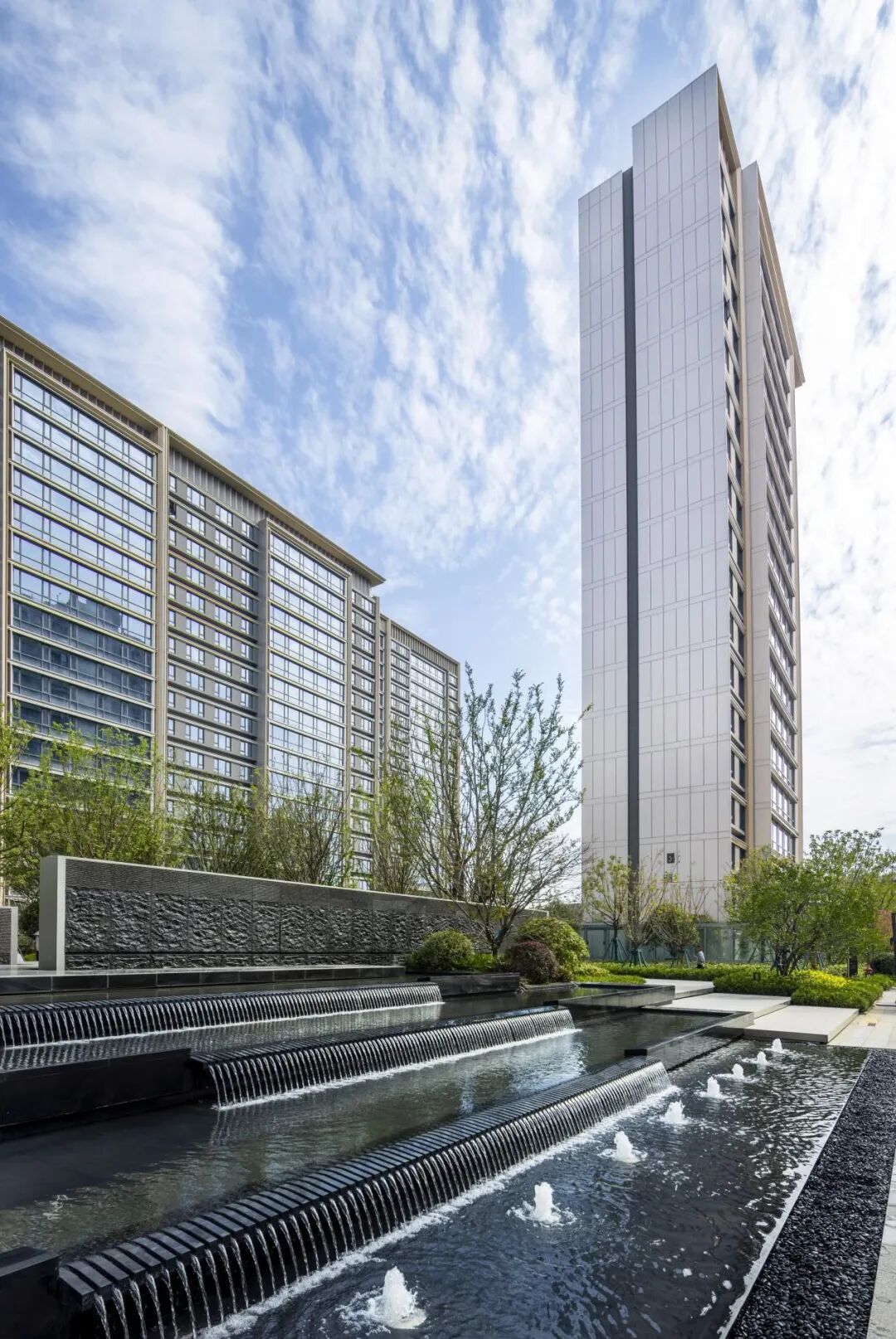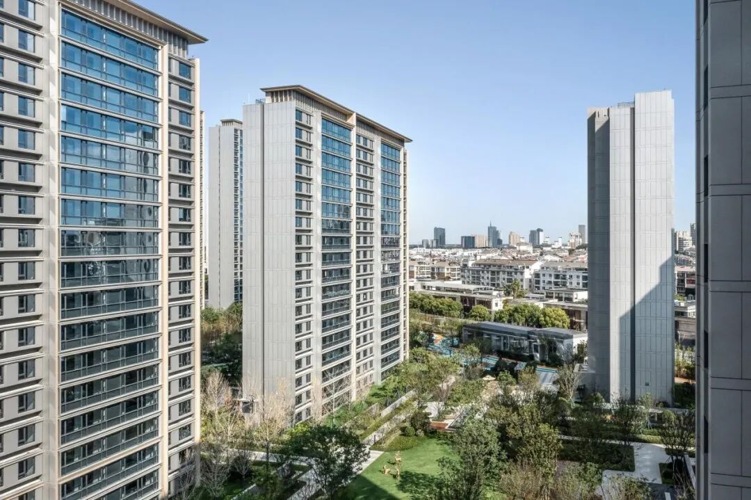 置地中心幸福里(一期)包括14幢现代高层天幕塔尖住宅,其面积段为105-142㎡,满足全龄段的住户需求,其设计中采用大开大合、北高南低、外高内低的整体布局,打破平缓的城市天际线,有效地遮蔽嘈杂的城市界面,围合出超大尺度中心庭院,实现居住生活的通透感与连续城市界面的平衡感。