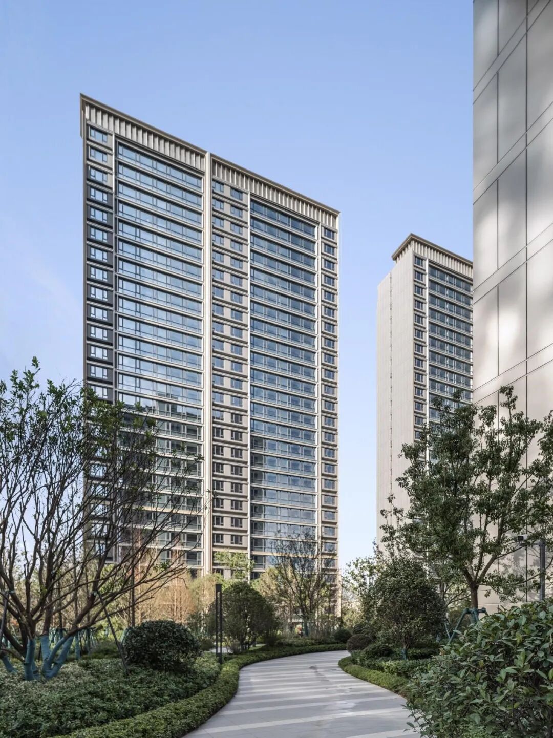 在设计中,我们对在窗墙系统如何实现幕墙效果,进行了深入研究。在最终效果中,如何高质量的实景呈现,需要建筑师在造价、规范等现实问题和立面理想效果之间做平衡。