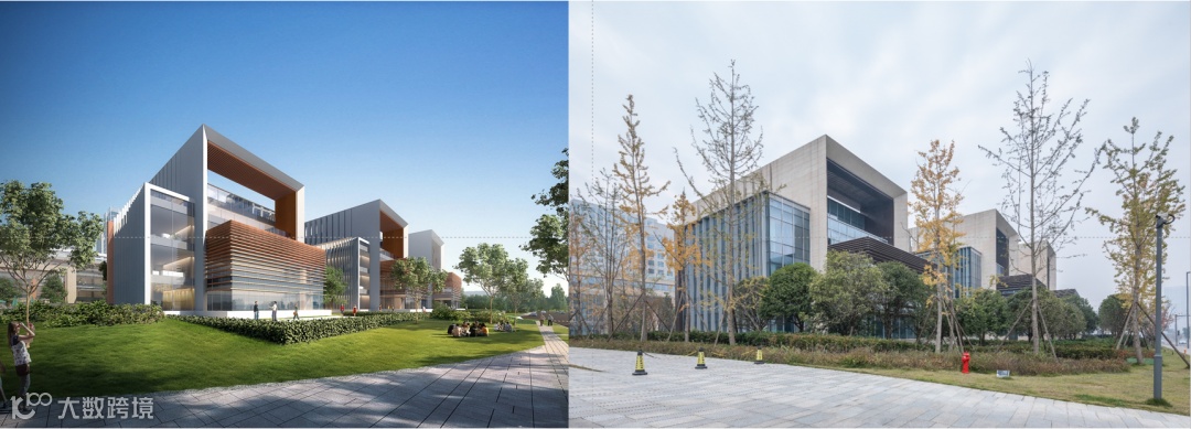 既统一又存在差异的建筑风格,赋予了园区独特的韵味。建筑冷暖色调及虚实材料的对比、融合,形成了鲜明大气的滨湖科研园区形象,呼应了天府新区公园城市的理念。