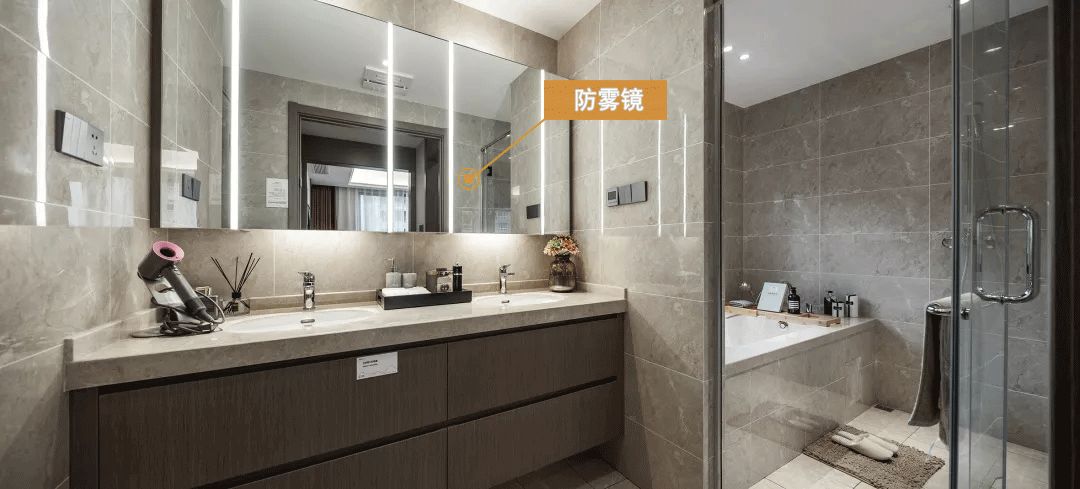 洗手间里面,爱照镜子的美眉会发现一个很腻害的设计,防雾镜!