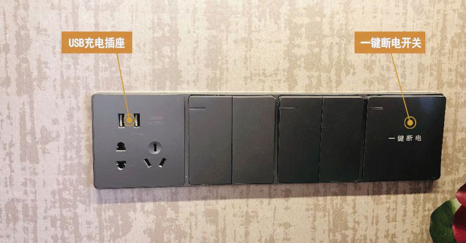 ◎ 在入口玄关柜台处设置一键断电控制开关,在出门时,可通过一键断电开关将室内照明灯具全部关闭,既避免了逐个房间检查的繁琐,又不会影响到需24小时常用的电器(例如:空调、冰箱等)特定线路的电力供应,人性化设计和考虑,让家更安全、更贴心。