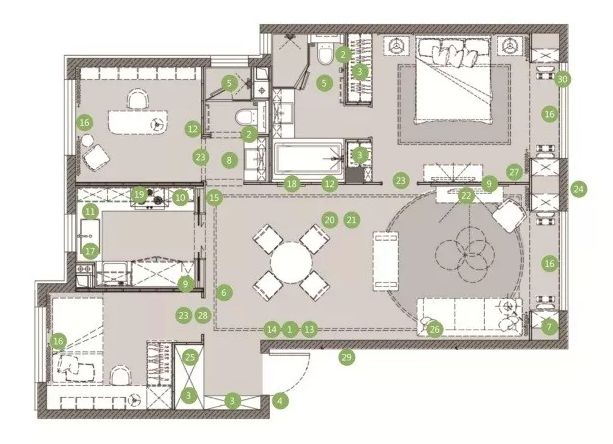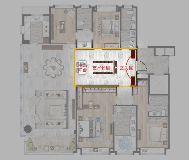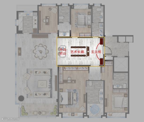 这两年流行的宽厅和方厅,已经取代了传统的长厅,家庭核心区进一步强化了。