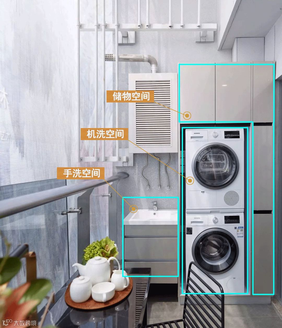 家政空间在强调收纳功能的基础上,强调隐蔽性。无需断舍离,只需把所有的物品统统规整到专属家政空间中,就能告别杂乱,隐蔽角落都井井有条,使日常家政琐碎与生活起居空间分离,互不干扰,家政空间从实用功能上来讲,要满足机洗区、手洗区、放置区、收纳区的不同分区和功能要求。