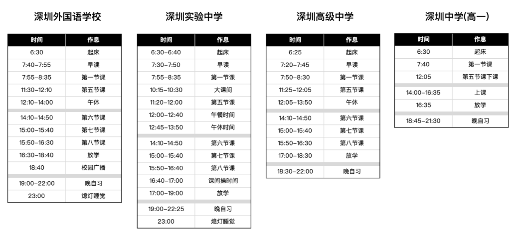 在了解到当今青少年学生的体育锻炼状况后,结合调查整理的几所深圳高中作息时间表,我们总结了高中校园活动场地设计原则。