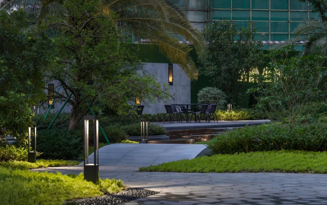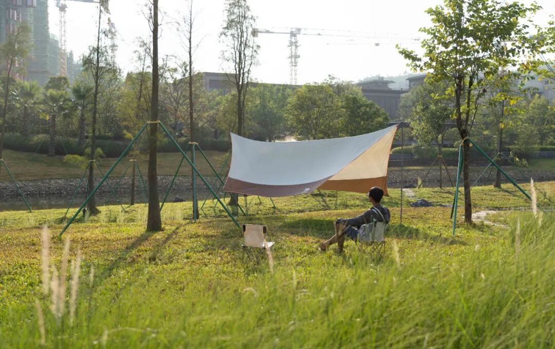 闲逸的林下空间,多层次的植物线条,丰富的景观元素打造充满生活场景感的揽溪水境。阳光透过树林洒在水面,犹如跳动的星光。