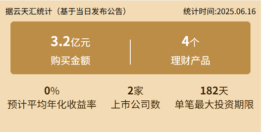 2025年6月16日,上市公司购买理财金额3.2亿元,共2家上市公司,理财产品4个。