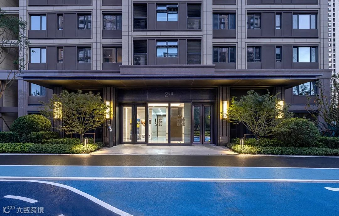 成都武侯金茂府的单元入口设计与外立面保持统一,线条简约现代。