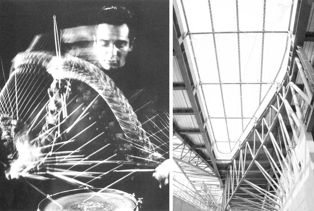 左:结构概念示意;右:施工过程照片 LEFT: STRUCTURAL CONCEPT; RIGHT: CONSTRUCTION PROCESS