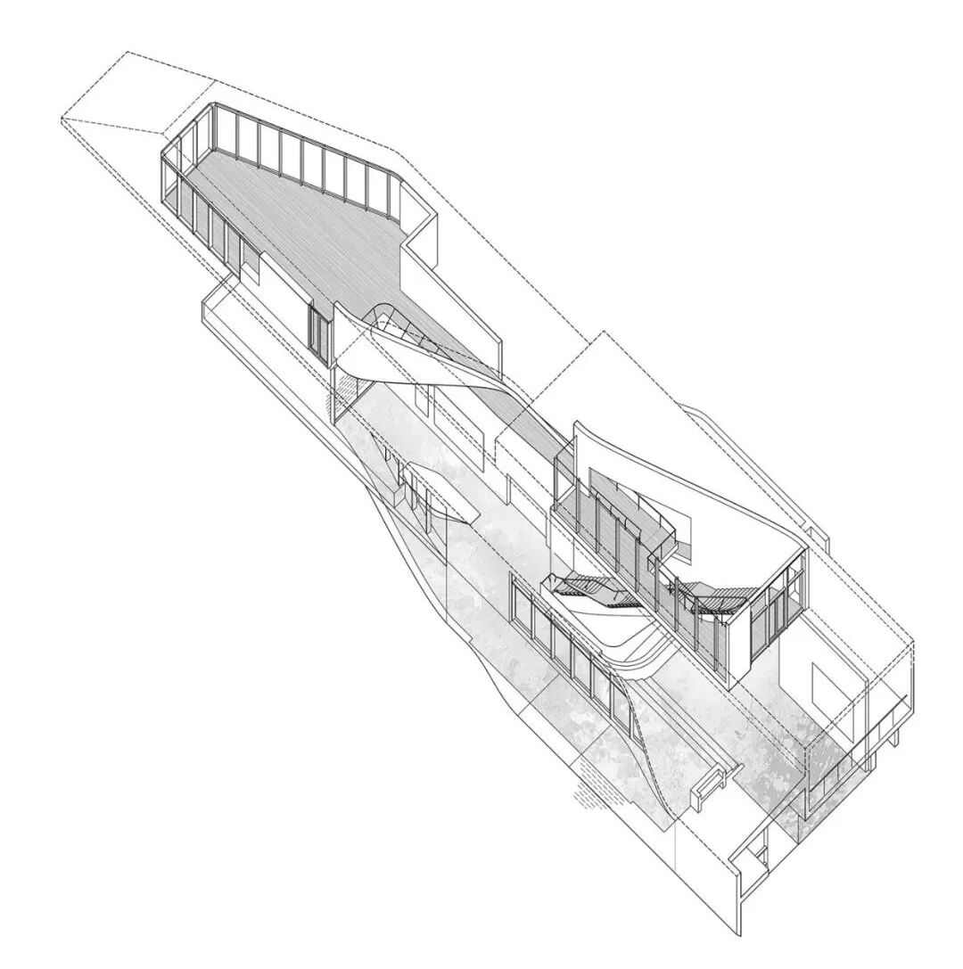 The design concept originates from a series of sinuous folding walls which twist ninety degrees in section to combine “wall” and “floor” into a single gesture. This process of turning and folding generates rich spatial experiences, connects interior and exterior, and turns the building into a unified and complete form. The experience of wandering between these spaces shares a spiritual connection with the experience of lingering in traditional Eastern gardens. By applying a controlled number of sinuous geometries and a clearly defined circulation strategy, the building can be understood as a contemplative sequence of connected spaces.