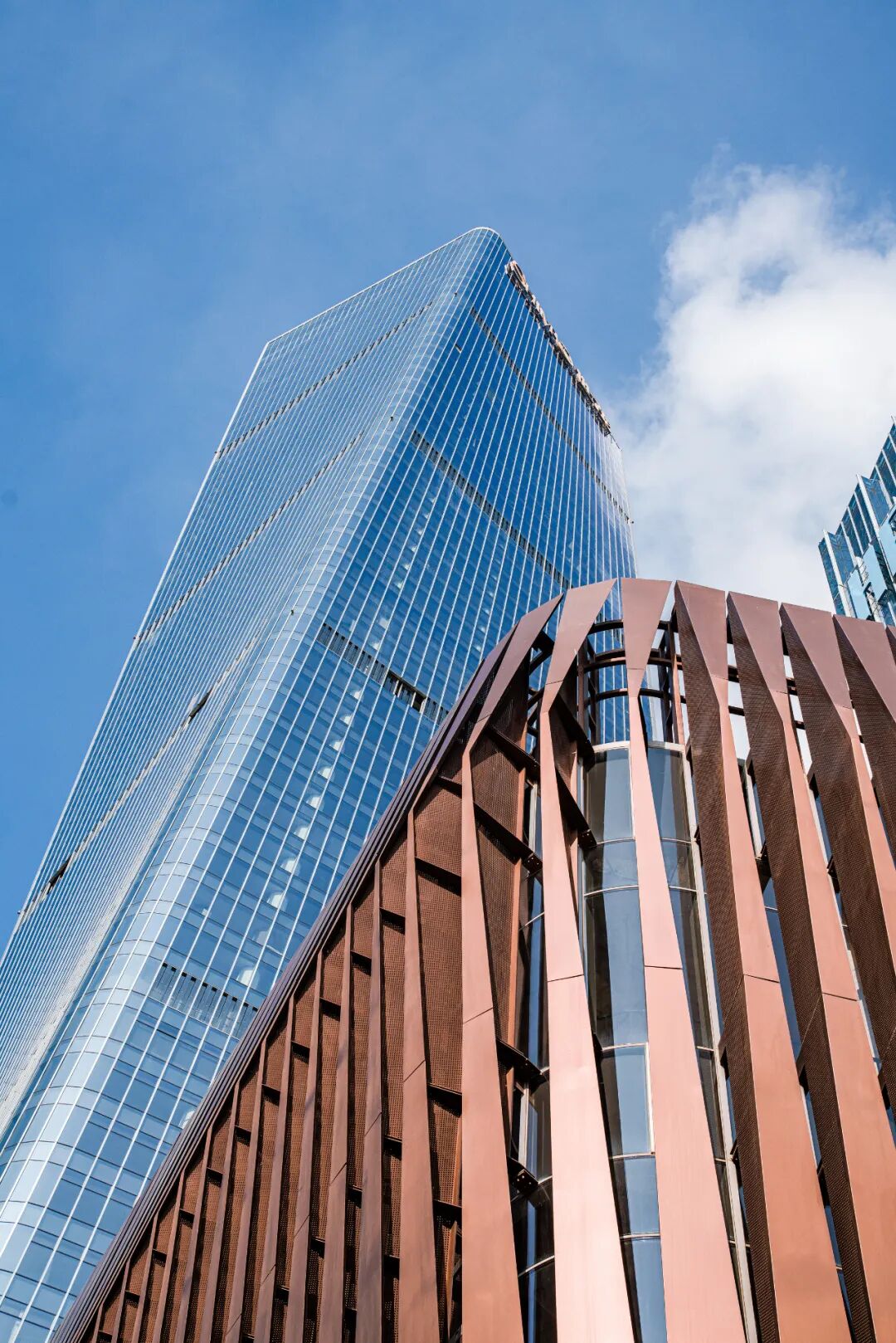 建筑裙房与步行网格在多个维度进行交织,并在地下连接至地铁站。精心雕琢的造型、肌理丰富的幕墙,以及冷色调、高反射率的玻璃与暖色调的铜质选材进行艺术对比,从而打造尺度宜人的步行环境。开放度、多层商业规划、激活的城市广场,这些设计要素都旨在提升社区内部的公共空间。