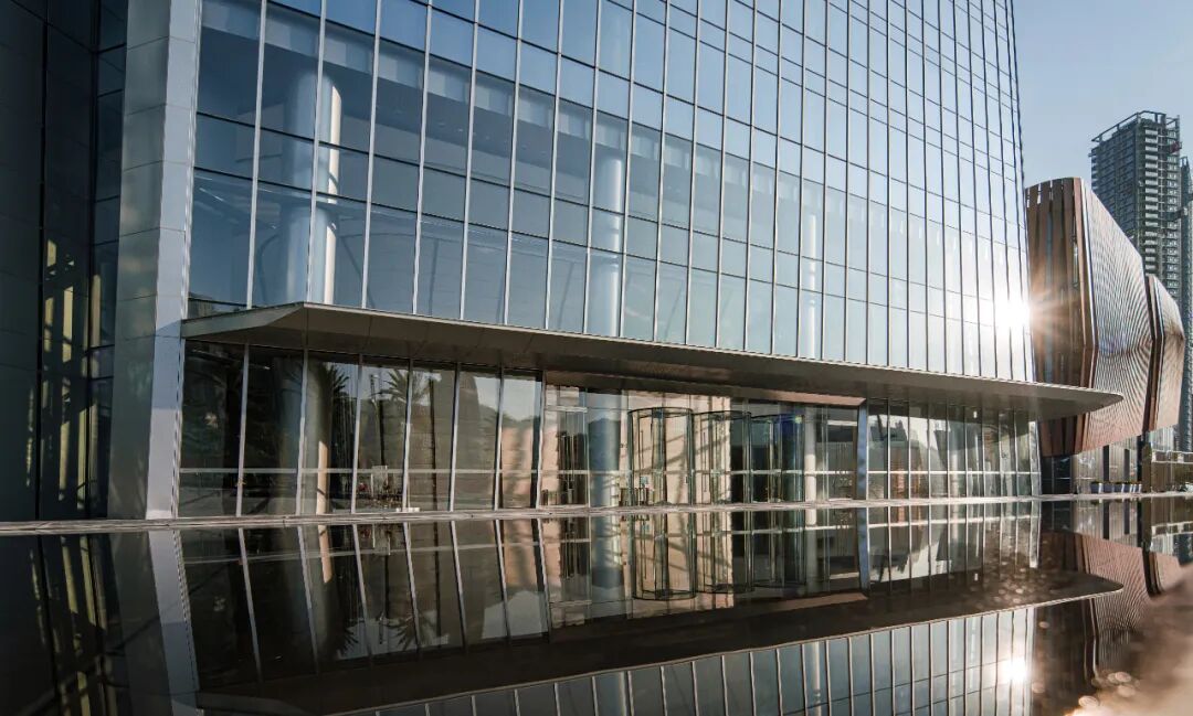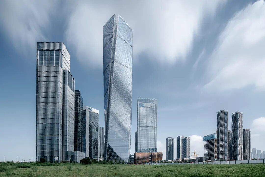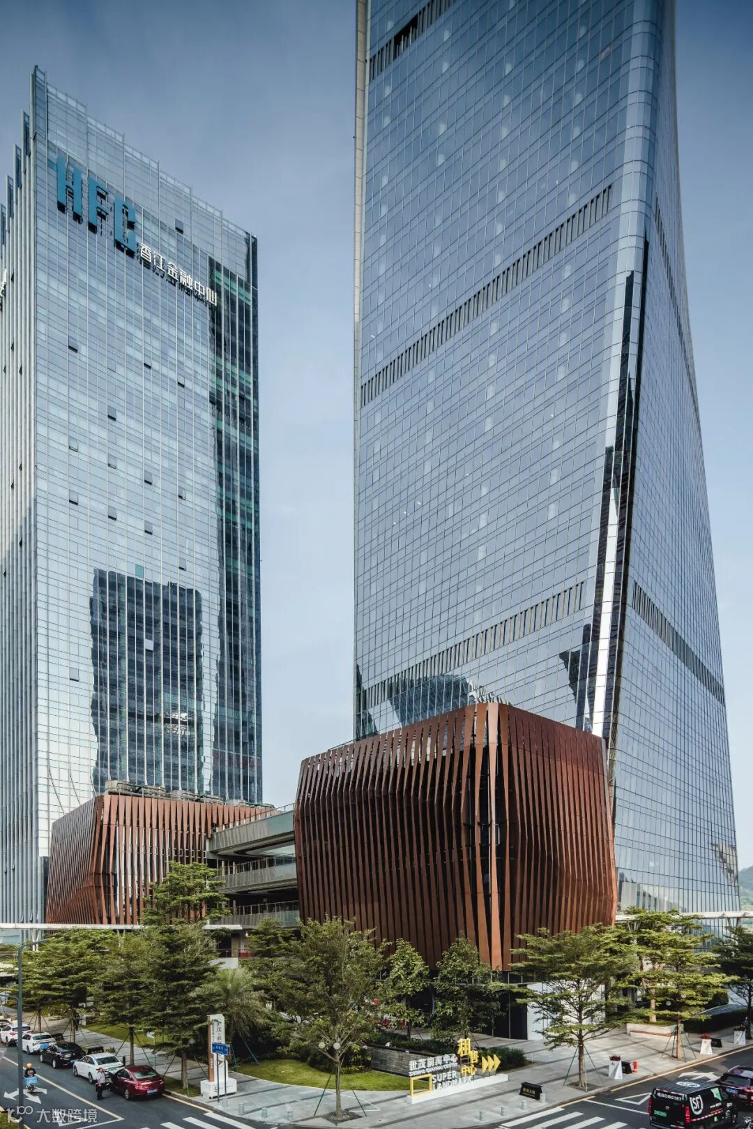 近300米高的前海世茂大厦,是深圳前海地区的地标,也是世界上最高的结构扭转建筑之一,它采用自下而上的收分式设计,实现外幕墙+结构外框柱同时扭转的形态。