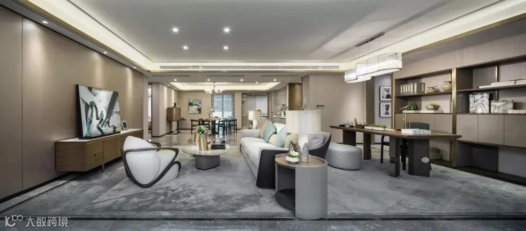 比如济南奥体金茂府232㎡户型,约60平米的边厅置于整个户型的右侧,与公卫和餐厨形成整个动区,一方面满足了“生活进阶”的面子,一方面满足了“空间尺度”的里子,是一个迎合多重需求的创新。