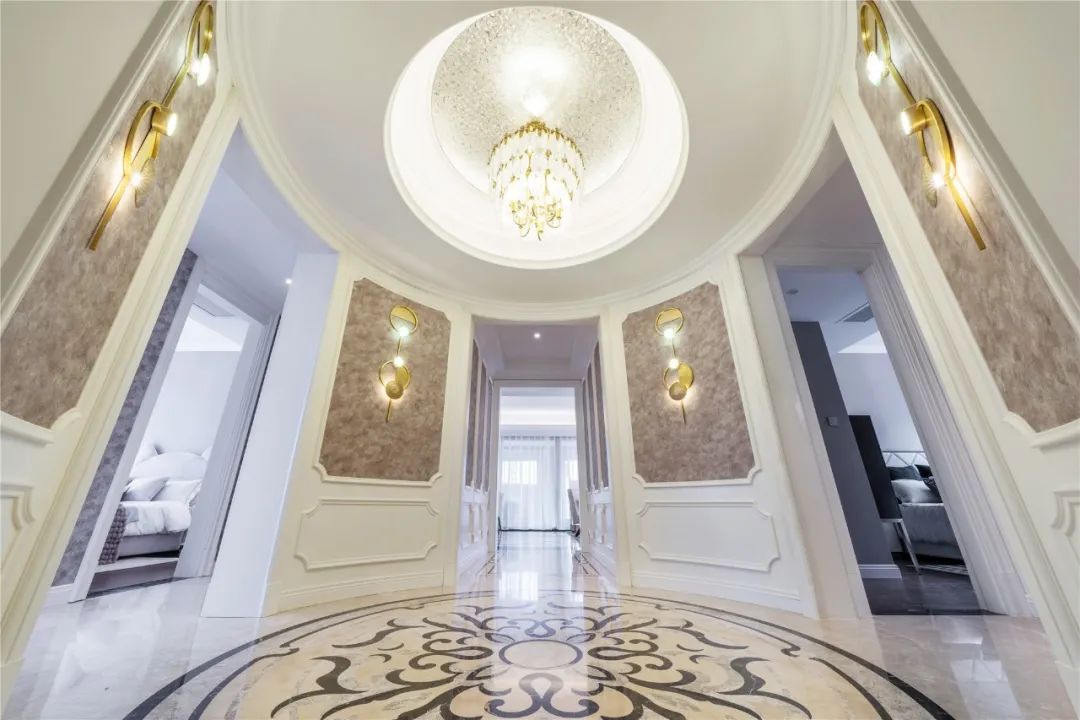 这种圆形玄关是从北美著名的纽约上东区流传出来的,也被称为“女王玄关”。锦江天玺在建面约200平米空间中引用这种圆形玄关,可以说是引领了成都豪宅户型之先。