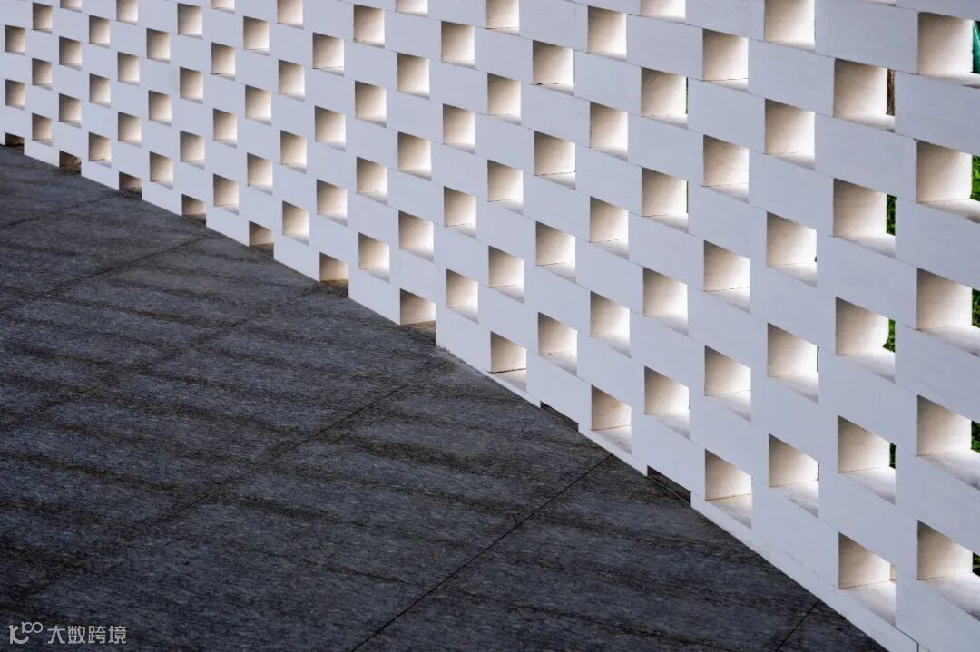 在细节的表达上,大量在墙体上借用建筑的花砖,在转弯处、对景处、透景处,成为一种亲切而熟悉的符号。在清晨或者下午的阳光照射下,显得格外细腻而立体,还生发出一种恍惚的透明感。搜建筑