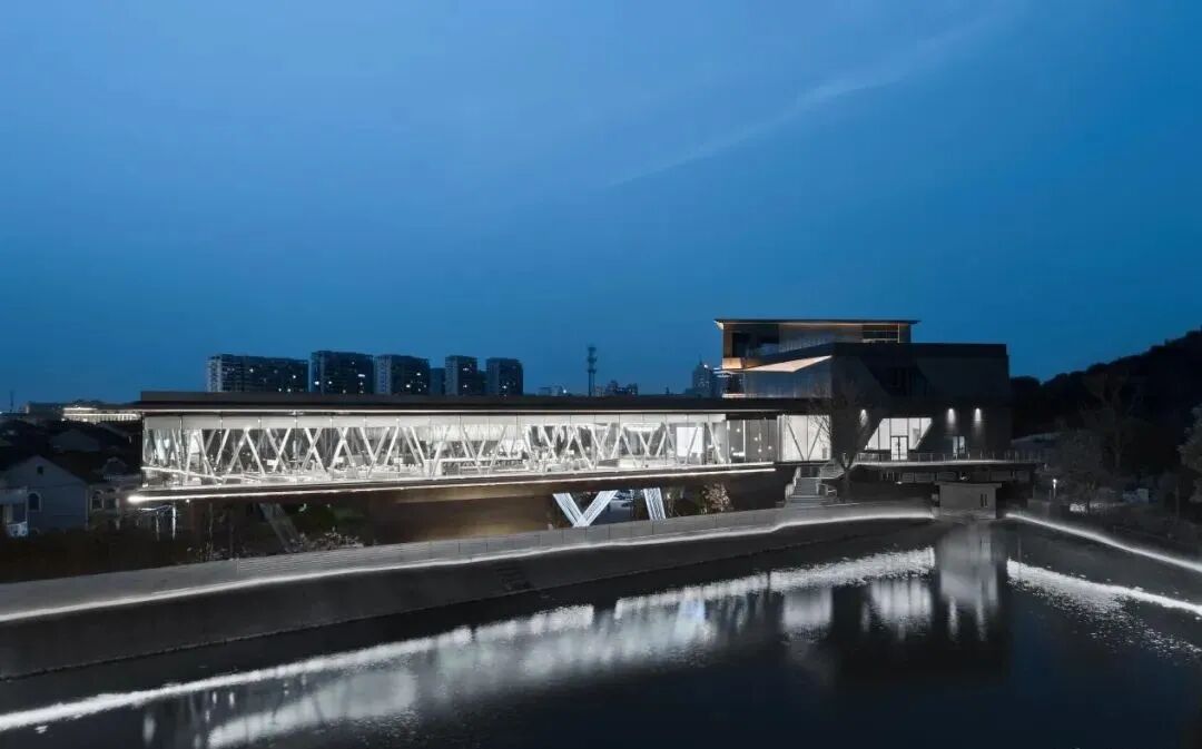 浙江保利银杏小镇售楼处,通过“悬挑”、“悬浮”、“极简”的设计理念,使用空间桁架梁式的钢结构形式,利用超细斜撑结构促成超级悬挑结构,创造售楼处主体建筑飘逸而通透的建筑形式。