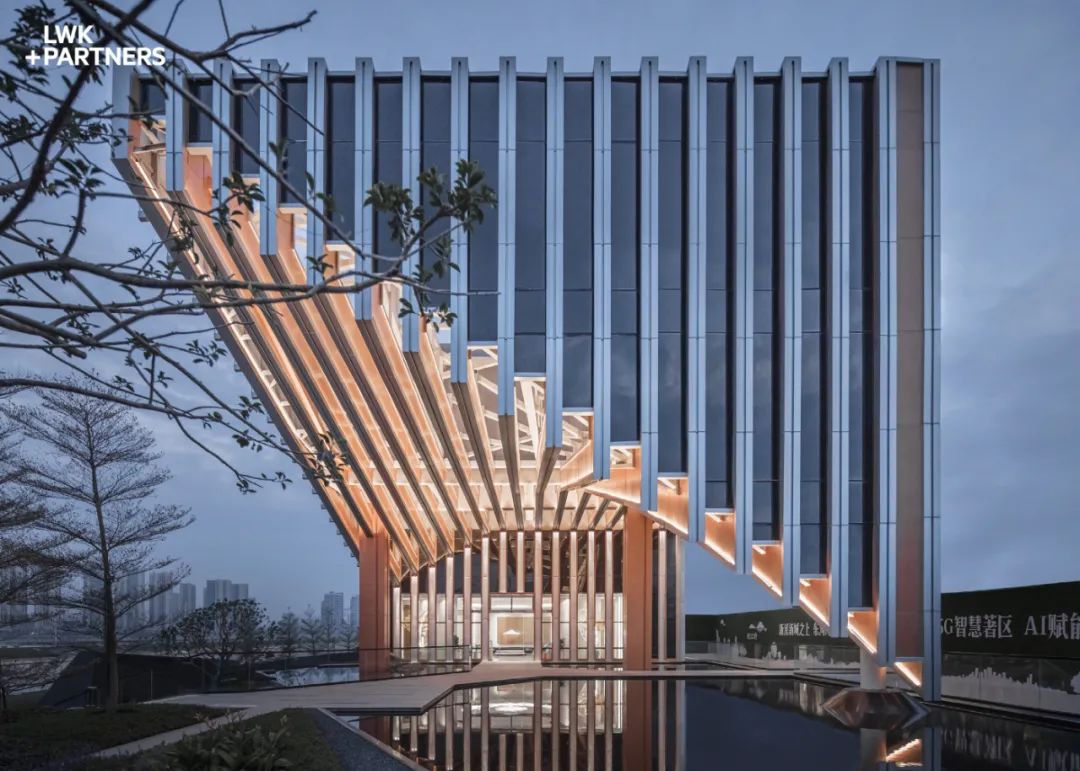 开放的大屋顶下是连贯的灰空间,结合下沉式庭院、广场和门厅,在这线性贯通的活动空间里,艺术的曲线,流动的空间,静谧的水景,万物生态间和谐相处,唤起人们对美好生活的向往。