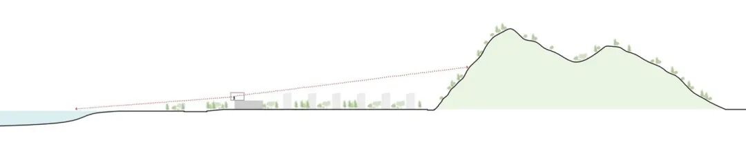 经过精细测试,示范区置于地块北侧,视线离地12米(黄海高程18.25米)处。设计采用轻盈通透的建筑的介入,既能形成更佳的观湖视角,建筑本身也成为敔山湾湖景中靓丽的风景。