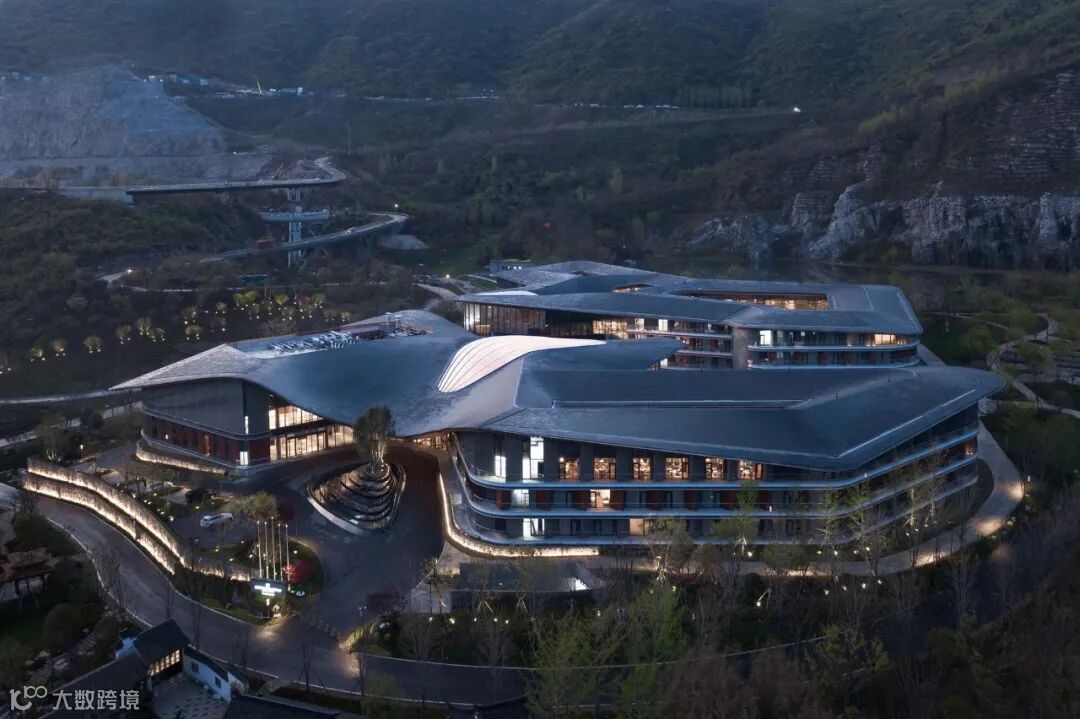 Topography folds into the garden view. The overall volume of Radisson Hotel is based on the geometric language of the earth, and the 15-meter height difference of the site creates a cascading and coiled geomorphic landscape, which is generated by the topography, dividing the site into two program areas, north, and south. The design sets five kinds of height difference changes, with a circular tour path as a clue, connecting five elements of the guest room units, reception Datang, public recreation, dining and entertainment, and landscape tour garden. The building is a self-contained system, which is in a natural dialogue with the texture of the cliff and echoes the surrounding wilderness. The multi-directional space brings a dichotomous balance between people and nature. Meanwhile, in addition to the complex relationship between the site and the cliffs, pools, and ponds, the water system, and mountain and lake scenery, there is a novel landscape composed of many small and micro gardens in the Urban Exhibition Park of the Expo Park. The linear folding interface redefines the boundaries of the urban garden, giving the Radisson Hotel a hidden and rigid landscape layout strategy of “great completion is lacking, great lack is becoming”. The slope of the hotel and the folded boundary form a staggered layer, which together with the trees in the garden reflect each other, and achieve dialogue and harmony between architecture and the environment.