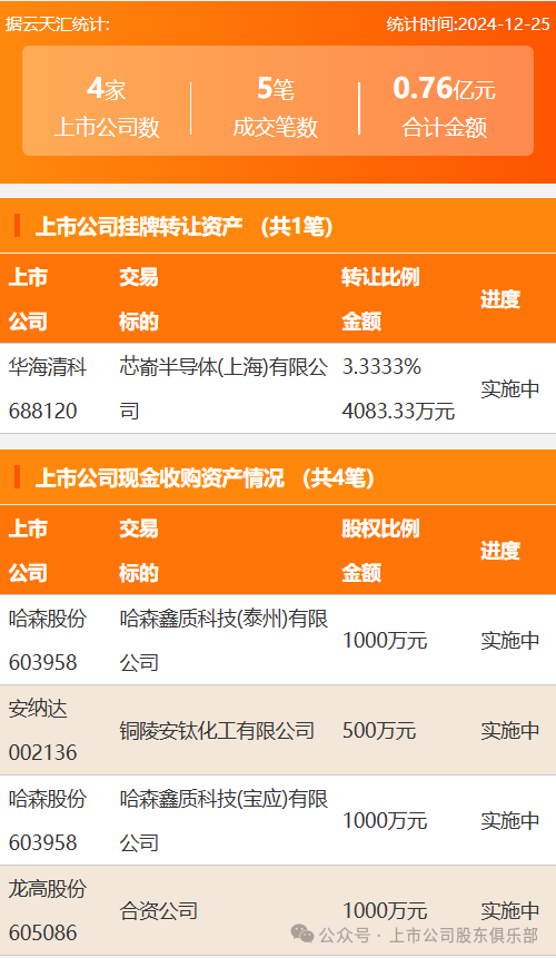 收购资产4笔。