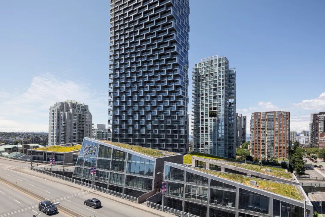 The 220-meter-tall Telus Sky tower, and the 149 meters high Vancouver House, accommodate mixed-use offices and residential spaces, with connections to cycling and pedestrian pathways in their platforms. Moreover, both hold the highest level of Energy and Environmental Design. Vancouver House is the city's first LEED Platinum building, and TELUS in Calgary now occupies the largest LEED Platinum footprint in North America, with 70,725 square meters.