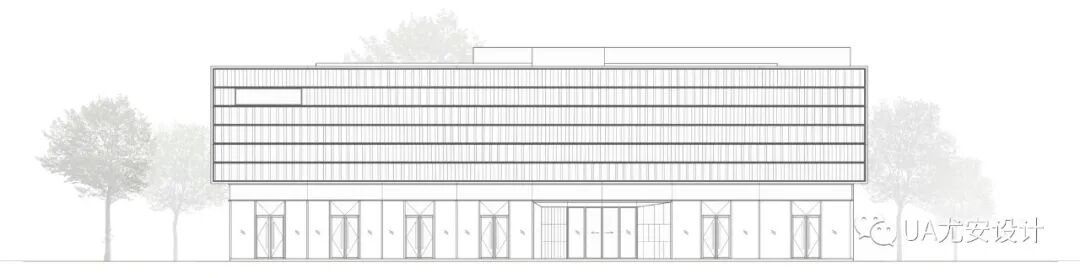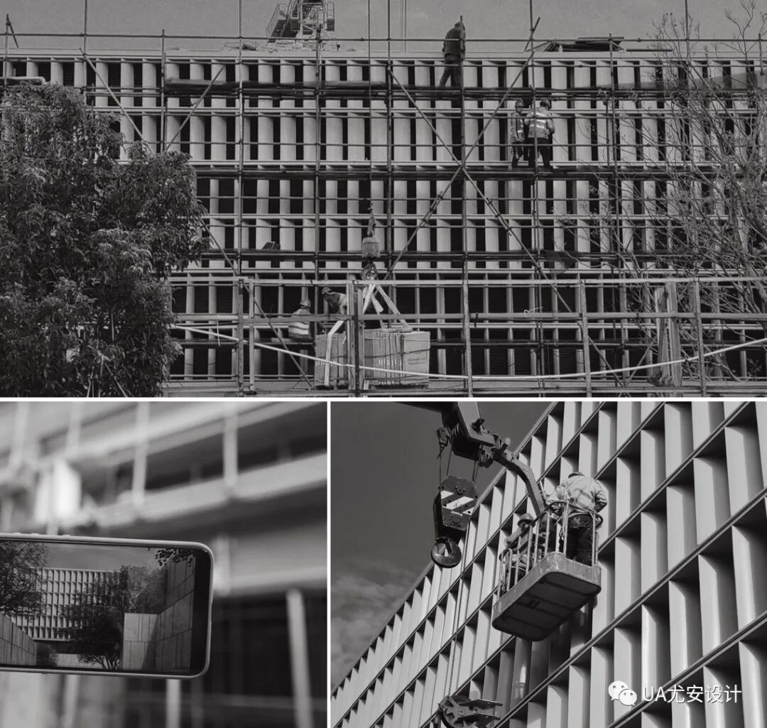 在一体化色彩纯净控制的基础上,层次性丰富主立面表皮系统,形成别有洞天的主界面。静止的“鳞片”,随着角度的变化宛若微风拂过激起阵阵涟漪。时光更迭,建筑在光与影的变化中,呈现出不同的肌理。