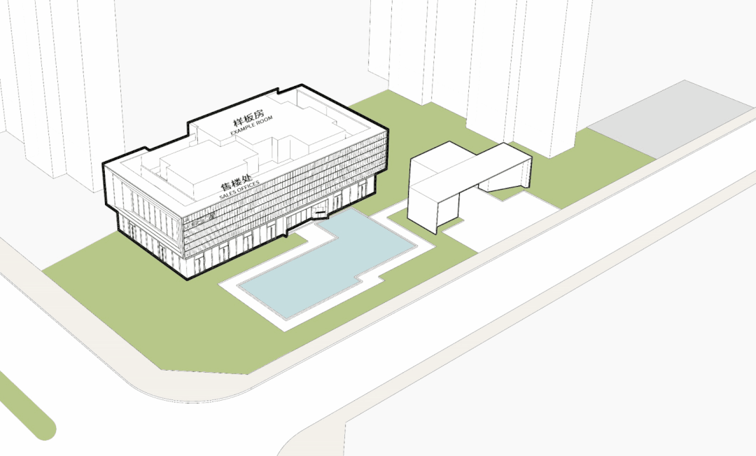 基于示范区设计场地相对狭小,可展示面窄,且周边待发展,城市界面尚不完善,设计通过“整体性打造”思维的构建,选取主体建筑落位地块西北角。同时,为赋予示范区可探索属性,设计结合场地实际,通过社区大门前置引入的方式,塑造示范区主入口,以延长示范区流线及展示项,在有限的范围内打造示范区前场,并在功能流线与景观设计一体化打造的基础上,铺陈场所的高体验性。