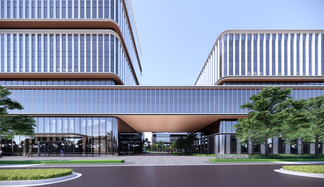 为了结合医药产业“以人为本”“治愈”的氛围,建筑转折处做倒角设计,形成柔和灵动的曲线,使得建筑体量更轻盈,营造出柔美的空间感受,增强了园区形象的可识别性。