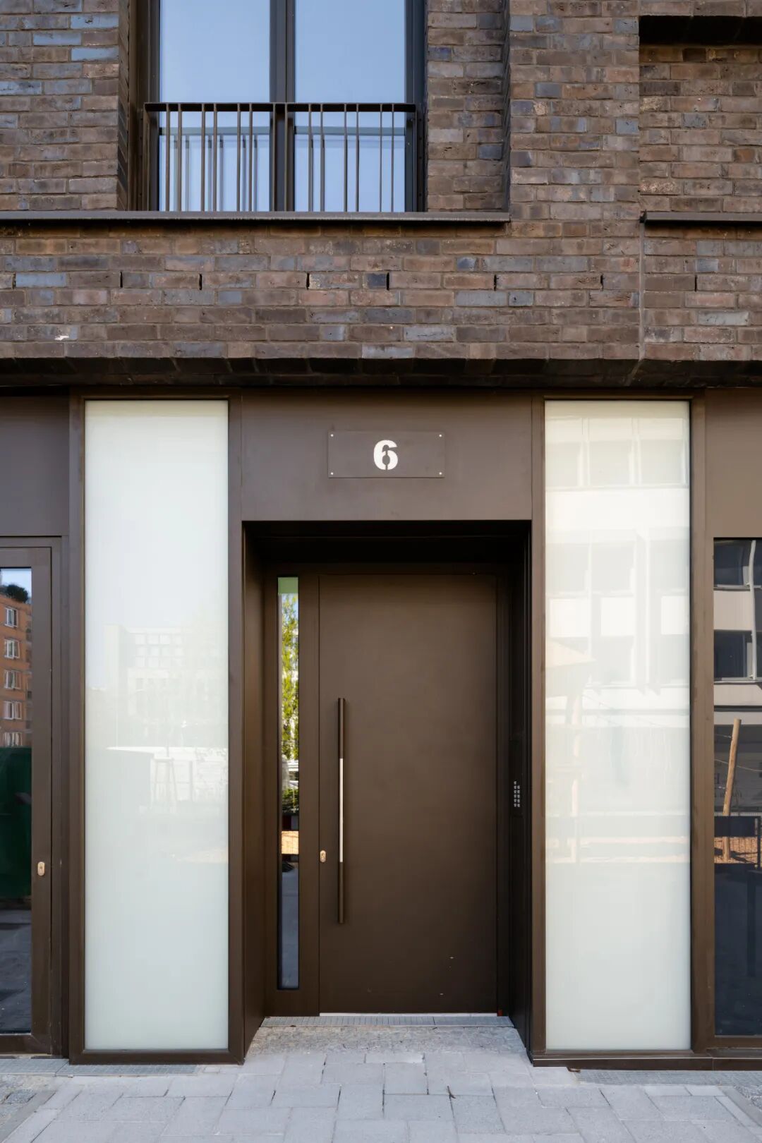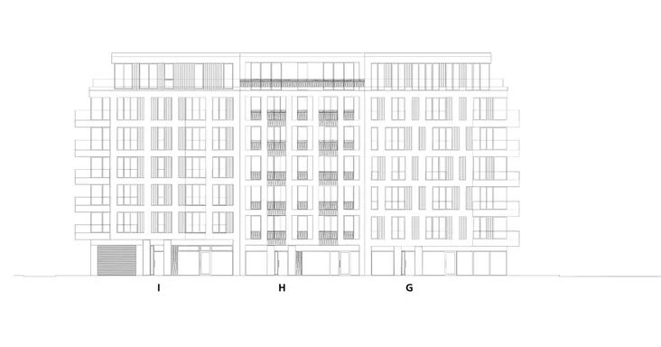 14座无缝连接的建筑的基本布局形成了一个带有封闭内庭院的P形建筑。六层每层都支撑着一个交错的楼层。多样化的城市风格反映在综合体的外观上。主要的玻璃,商业用途的地面层将排与一个诱人的正面融入到街道空间。虽然上部楼层的结构强调垂直,但每栋房子都有自己的设计和个人细节,如其自己的表面材料,其不同的饰面或阳台的设计,脱颖而出。