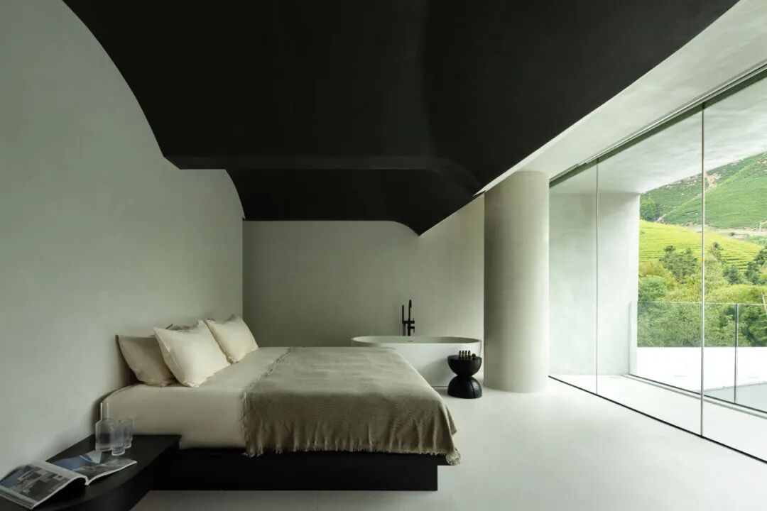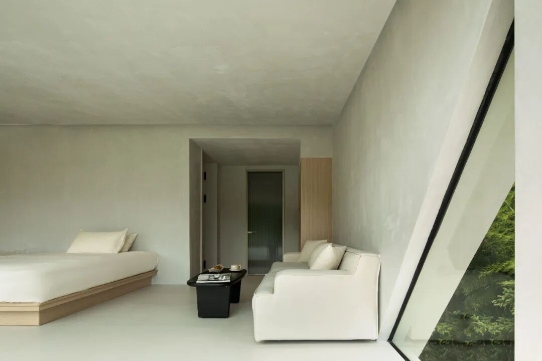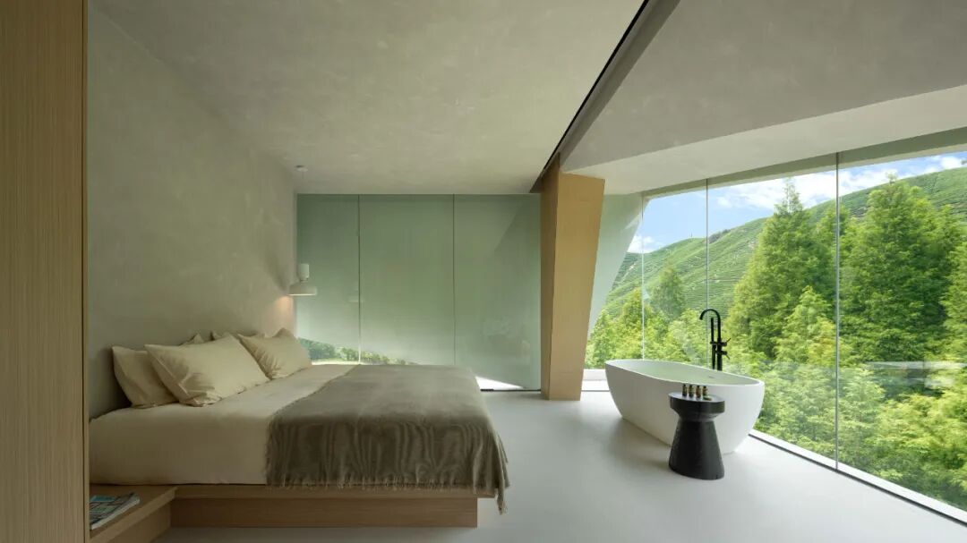 在建筑外立面的设计中,设计师增加了许多视野的考量,通过落地玻璃与体块结合,每一间客房都能看到室外最好的风景。