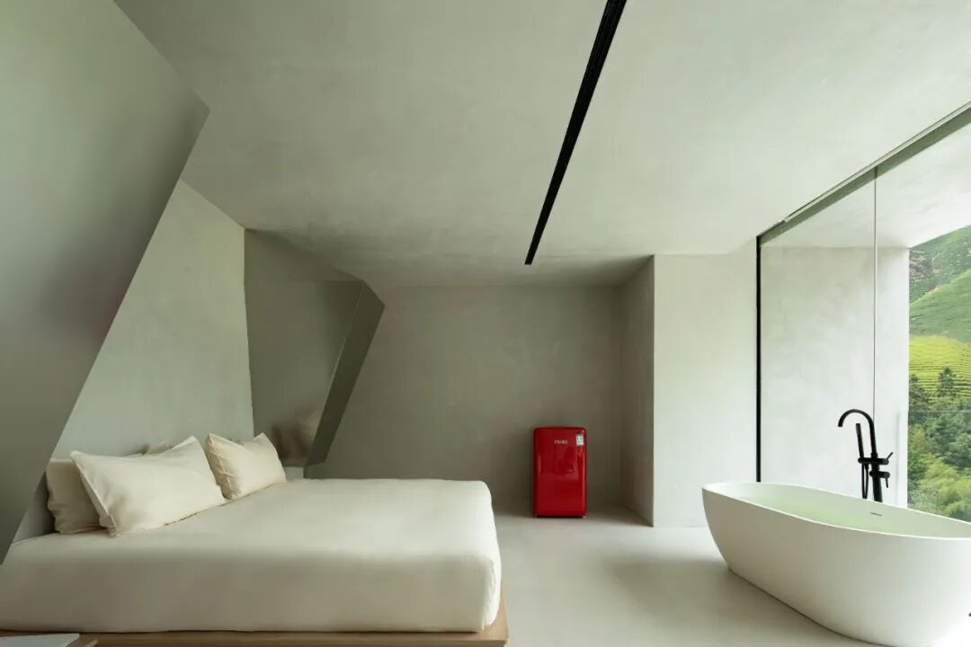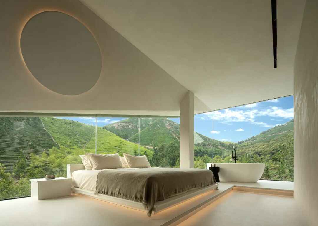 The purity of the rabbit makes the space appear white. The large rabbit ears and the floor-to-ceiling glass form each other, reflecting the green mountain scenery in the distance, and having the experience of sleeping in the mountains.
