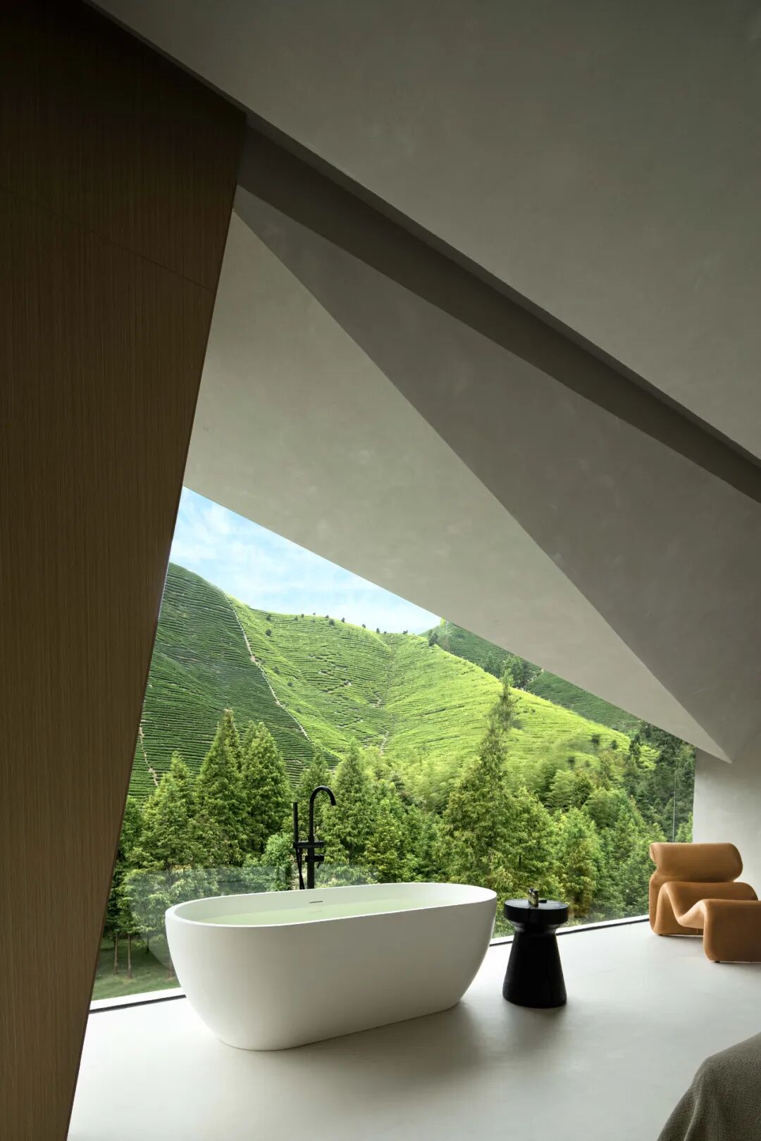 木的材质展现出马儿温和的性格,细长的四肢有力地支撑起空间,落地玻璃窗边的浴缸无时无刻不在感受一种向往自然的生活方式。