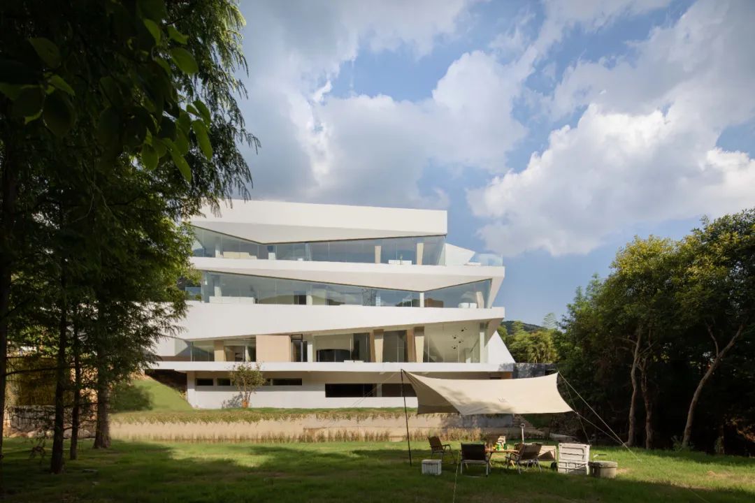 After a forest and grass, the the Laiye building suddenly appeared in front of the eyes. The designer compares the building to the rough and natural living space of animals and abstracts the irregular geometric volume. Unlike the flat and straight lines, the triangular angular structure brings strong visual tension to the building.