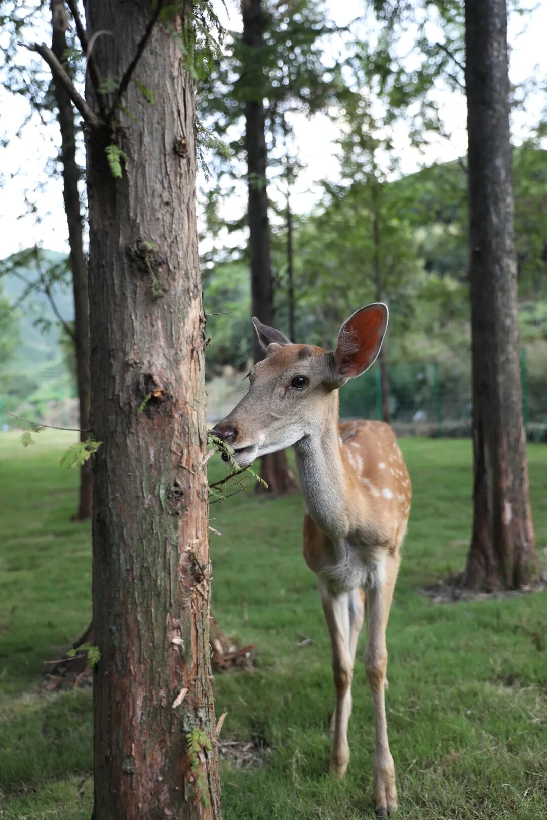名为“拾贰”的梅花鹿自由地在林间穿梭,等待着与客人的互动,野趣感进一步升级。