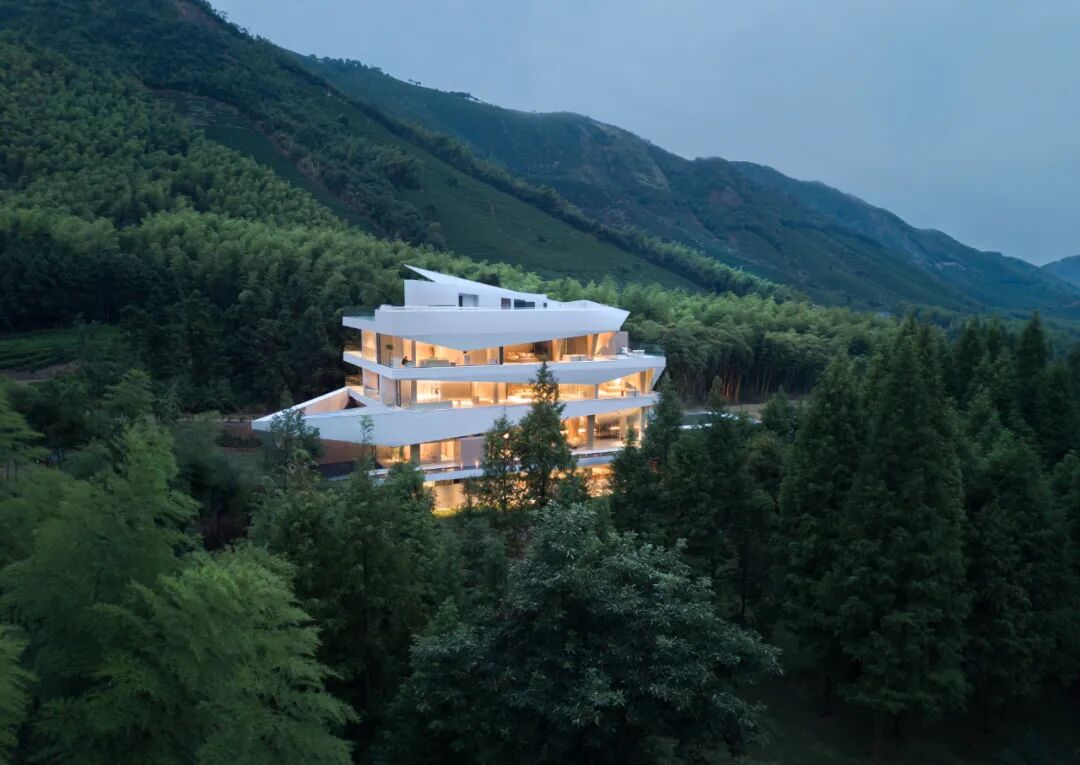 通过不同体块的构造,让光线自然引入室内,达到室内与室外的和谐对话,悠然自得地在山林间遨游。