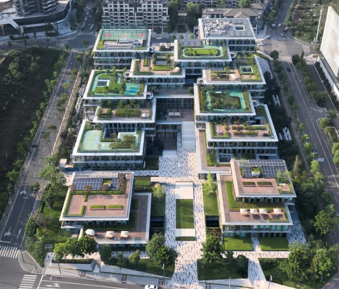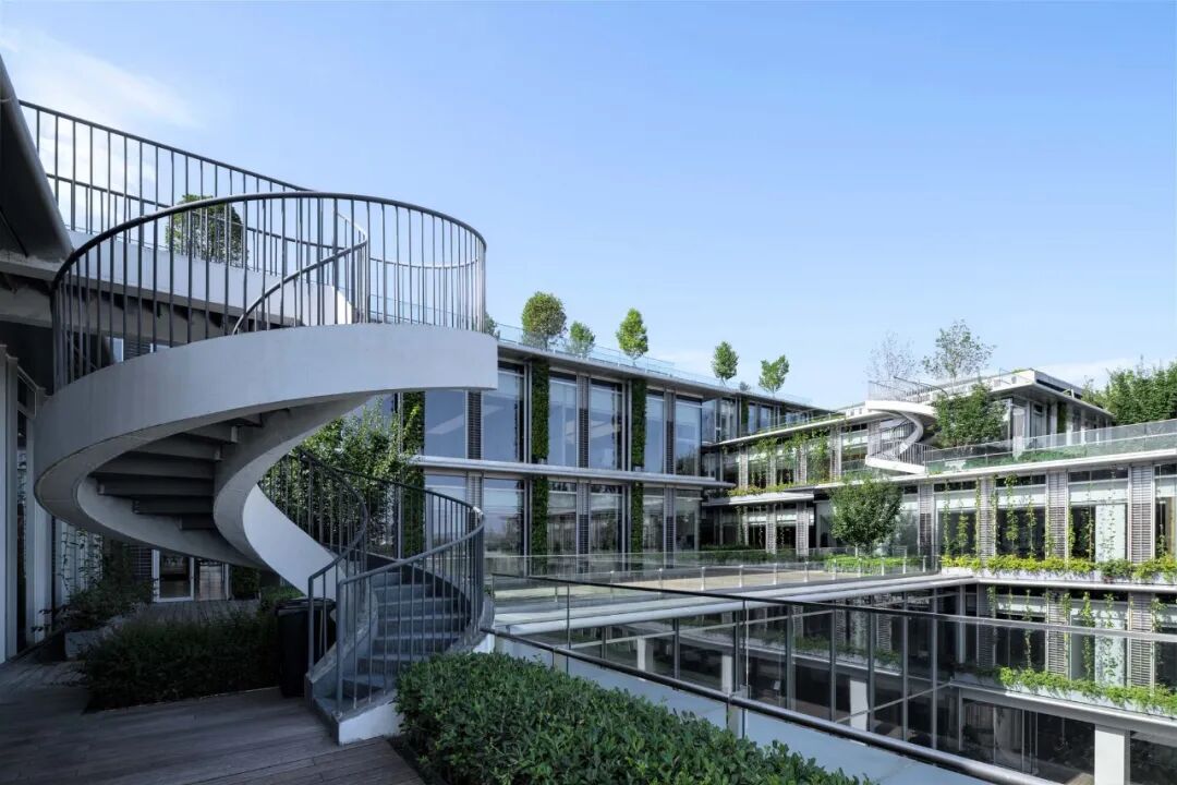 生态是这一新场景中至关重要的维度,指引了建筑、环境、人三者之间的良性互动。办公建筑通常与高密度城市化区域关联,人员密集、能耗集中;同时相较于功能形态固定的类型,办公建筑的空间随着时间不停改造更新,因而成为了生态意义上的高耗费品。