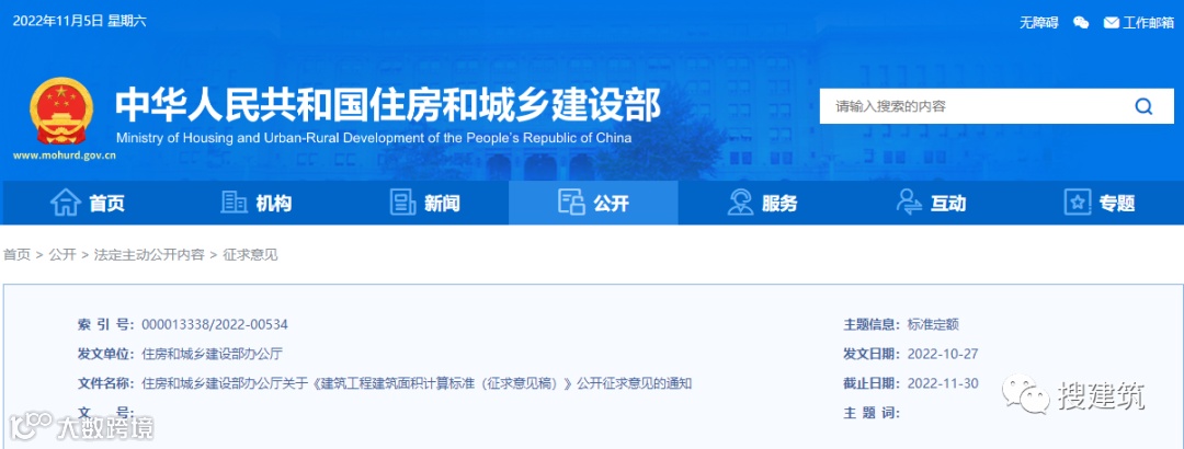 为统一规范建筑工程建筑面积计算方法,我部组织对《建筑工程建筑面积计算规范》(GB/T 50353-2013)进行了修订,并按照工程建设标准化改革要求,将名称变更为《建筑工程建筑面积计算标准》。现向社会公开征求意见,有关单位和个人可于2022年11月30日前通过以下途径和方式提出反馈意见