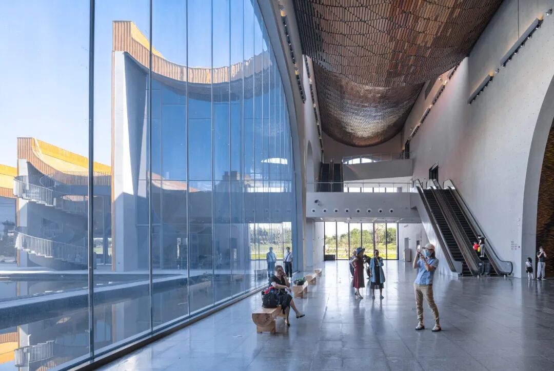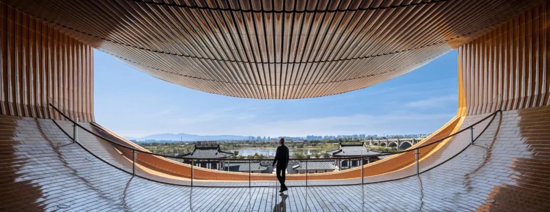 建筑风格方面,博物馆所在的隋唐大运河国家文化公园正处于隋唐洛阳城遗址的范围,周边规划了大量的仿唐风格景观建筑。按惯常思路,这座运河博物馆必是唐风建筑无疑。我们的设计试图跳脱出仿唐风格的包围和束缚,寻找对隋唐历史文化的不同切入视角。