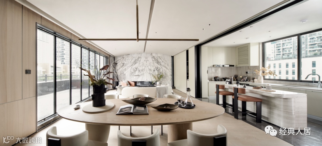 约270°环幕视野,尽享头牌视野;约40㎡超尺度社交宽厅,餐客一体空间。