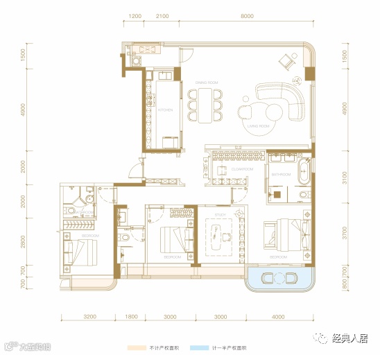 一梯一户,环幕平墅,项目的客厅加上景观阳台,面宽可达15.15米,公区的功能空间已经不是LDK所能囊括。