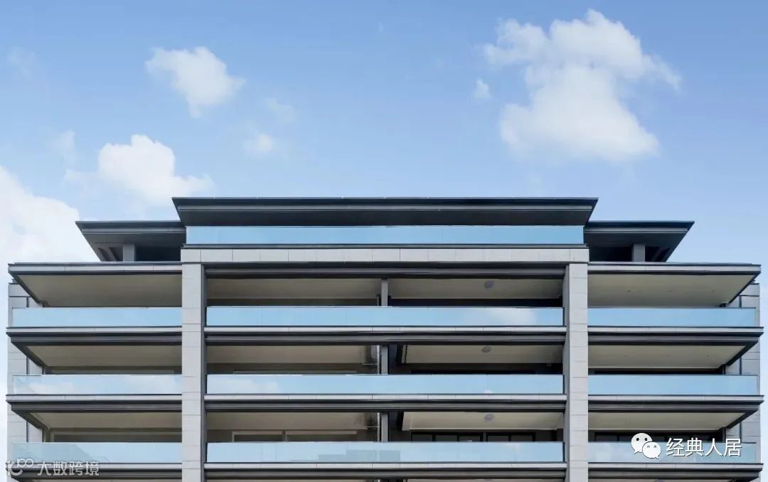 圆角挑檐,弧形线脚,律动感的屋顶组成丰富的造型,层间采用宽窄两条弧线线条交错有序,使立面更加灵动。入户大堂简约典雅,追求近人尺度的温暖和细腻感受。