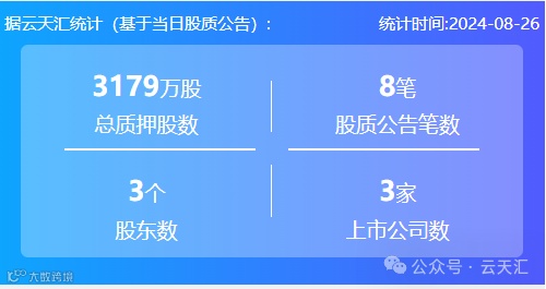 2024年8月26日,股票质押总质押股数0.32亿股,上市公司数3家,股质公告笔数8笔,股东数3个。